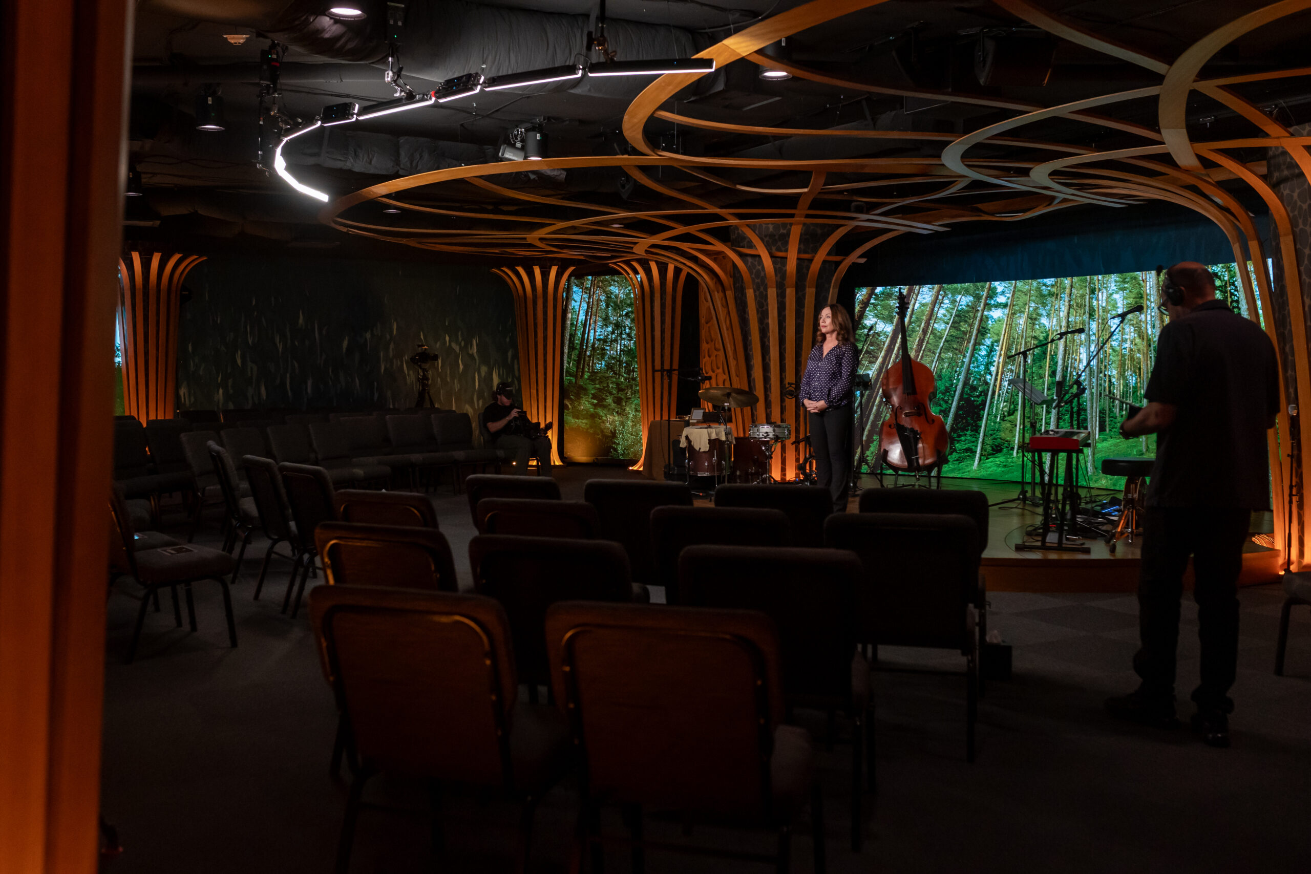 Alice Scenic Studios brought the “Stonefruit Studio” project to life as a turnkey solution, creating a multi-purpose performance and recording studio that is both acoustically and aesthetically flawless.